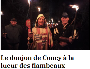 | L'Aisne Nouvelle du 21 mars 2026 Le donjon de Coucy à la lueur des flambeaux. Ce samedi 21 mars 2026, la marche aux flambeaux en hommage au donjon de Coucy a réuni 200 personnes. Un spectacle de feu a conclu cette grande déambulation. La grande marche nocturne organisée par Les Amis de Coucy a rencontré un franc succès en réunissant près de 200 participants. Dans une ambiance à la fois festive et chargée d’histoire, la joyeuse troupe a emprunté le chemin de ronde, guidée par des chevaliers en costume d’époque, évoquant le temps d’Enguerrand III..