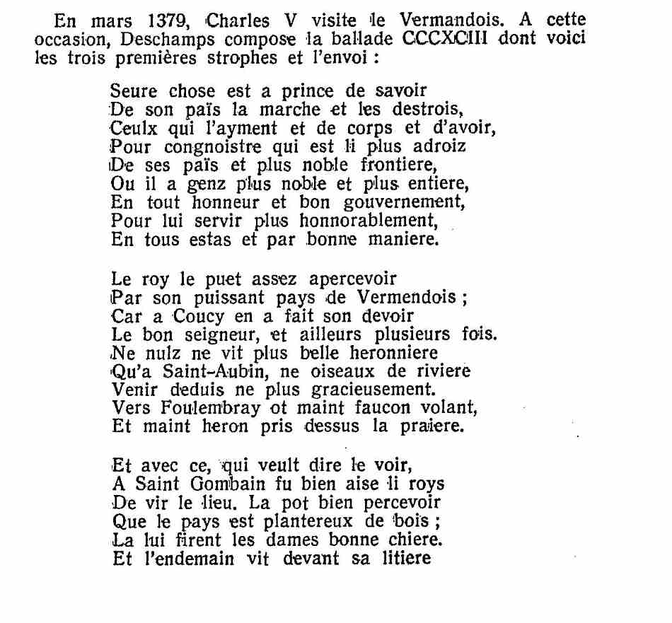 Cet écrivain-poète est central dans notre histoire bien que quasiment oublié dans nos universités; ________ Sur lui et son oeuvre : L'étude de E.Landru ________ Son chant d'amour sur le Vermandois et Coucy et ses habitants pour le roi Charles ![]() ![]() Son chant de mémoire à la gloire de son contemporain Enquerrand VII ![]() |