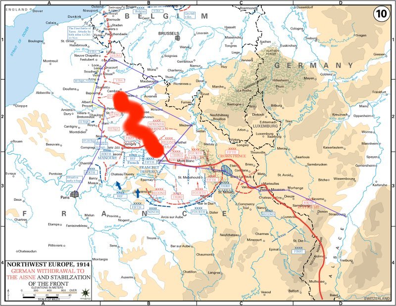 Que retiendront nos enfants de l'itinérance mémorielle macronienne ? Rien sur la guerre, rien sur les politiciens qui ont conduit à ce conflit, rien sur l'acharnement stupide, rien de moral et éducatif, rien sur la nécessité de construire la paix encore aujourd'hui ! Itinérance Macron ! Où comment faire de la com par la périphérie sans aborder le sujet au fond. Carte de la ligne de front stabilisé en 1916 en bleu, parcours dit d'itinérance en jaune, le front tenu par les alliés anglais en rouge épais, la zone martyre ![]() Constat